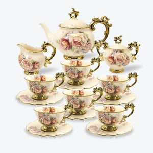 This beautiful 15 Pieces British Porcelain Tea Set?is the perfect gift for any tea lover. The set includes a teapot, sugar bowl, creamer, 6 cups, and 6 saucers. The teapot and cups are decorated with a delicate floral pattern. The set is made from high-quality porcelain, which is the perfect tea set gift for your friends and family.