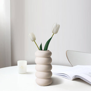 Introduce a pop of color to your home decor with this Abstract Solid Color Ceramic Table Vase. Its sleek and modern design makes it ideal for both contemporary and classic settings. Made out of premium quality ceramic, this vase is built to last. Its solid color pattern is sure to complement any room or setting. Add some fresh flowers or greenery to instantly elevate any space. Perfect for living rooms, dining rooms, or bedrooms.