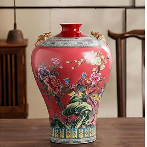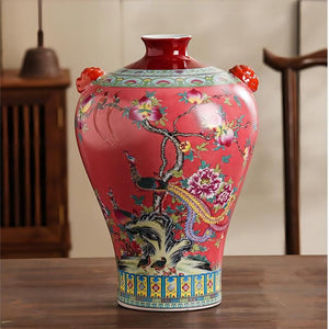 Amphora Flower and Bird Chinoiserie Porcelain Vase