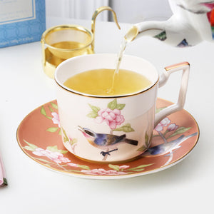 British Flower Bird Bone China Dinnerset with Coffee Cup,Dinner Plate