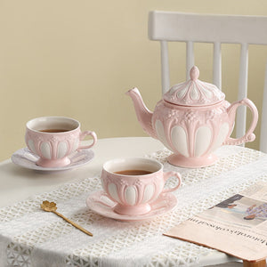 This product comes with a teapot and a set of cups for sharing afternoon tea with friends. suitable for coffee, cocoa, tea, milk, cereal, or whatever you want in a mug. The elegant and stylish tea cup and saucer set are ideal for breakfast and afternoon tea, suitable as a tea set for the table, tea party, and kitchen decoration, and also perfect for birthday presents, wedding gifts, Christmas, Thanksgiving, and anniversary.