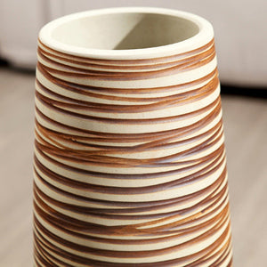 Brown Horizontal Striped Ceramic Floor Vase