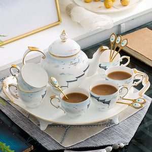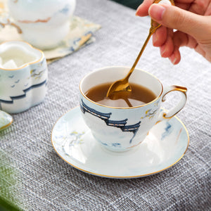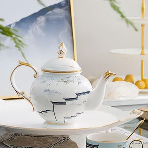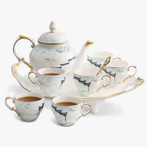 The Building With Lake Bone China Tea Set is perfect for enjoying a cup of tea with friends or family. It is also a thoughtful gift for any occasion.?