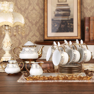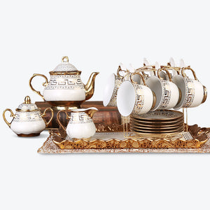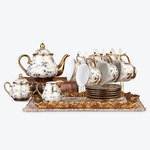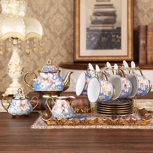 This beautiful flower pattern Victorian tea set is made with high-quality porcelain and features a stunning electroplating process. The delicate flowers are hand-painted and the plating gives the set a luxurious finish. The tea set is perfect for any occasion, whether you're entertaining guests or simply enjoying a cup of tea by yourself.
