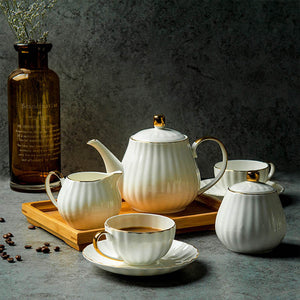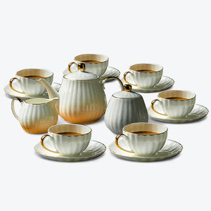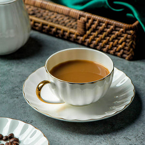 This elegant Gold Trim Pumpkin Coffee Set is the perfect addition to your fall d¨¦cor. The set features a delicate pumpkin pattern design with gold trim that adds a touch of sophistication to your coffee time. Crafted with high-quality materials, this set is ideal for use at home, in the office, or for special occasions. Enjoy your favorite brew in style with this charming coffee set.