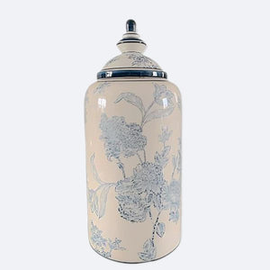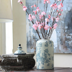 Green And White Hand-Painted Flower Floor Vase