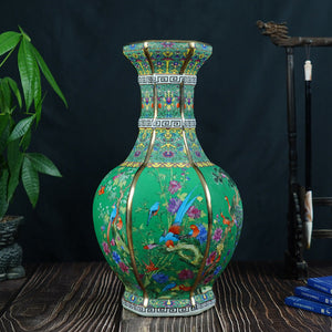 Order your Chinese Ming Style Hand-Painted Flower and Bird Enamel Vase today and bring a touch of elegance to your home!