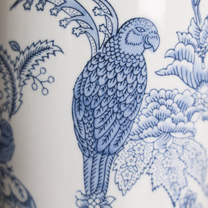 A: Yes! Parrots symbolize joy, freedom, and vitality, while the floral motifs represent growth, peace, and harmony. The blue-and-white color pairing is also symbolic of balance and unity in traditional Chinese art.