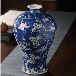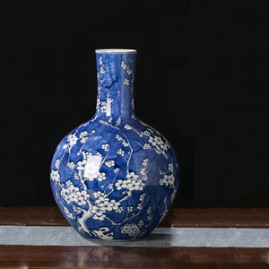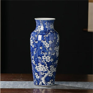 Hand-Painted Plum Blossom Blue and White Porcelain Vase