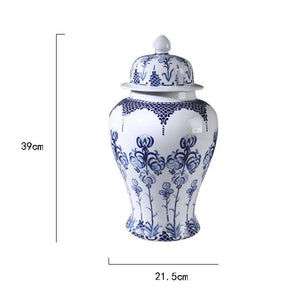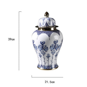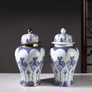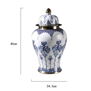 This exquisite ginger jar embodies the timeless allure of Jingdezhen porcelain, renowned as China’s “Porcelain Capital” for over 1,700 years. Featuring a rounded, gently curving body with an airtight lid and a delicate golden-trimmed knob, it seamlessly blends functionality with artistry. The jar’s pristine white surface is adorned with intricate hand-painted blue motifs—floral blossoms, scrolling vines, and Chinoiserie patterns—inspired by China’s Yuan Dynasty heritage. Subtle gold accents along the rim and details add a luxurious touch, while its sturdy porcelain construction ensures durability for storing tea, spices, or display as a decorative centerpiece. Rooted in centuries-old ceramic traditions yet tailored for contemporary interiors, this jar is a testament to cross-cultural craftsmanship and Jingdezhen’s legacy.