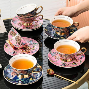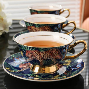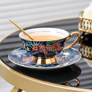 Elevate your tea or coffee experience with our Leopard Golden Rim Bone China Coffee Cup Set, a masterpiece blending timeless elegance and modern artistry. Crafted from premium bone china (30–50% bone ash), this set offers exceptional durability and a delicate translucent finish, embodying the heritage of luxury English afternoon tea sets.
