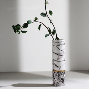 This gray-white ceramic vase is designed in a marble pattern, which is unique and elegant, and attractive. It is suitable for bedrooms, living rooms, restaurants, etc.