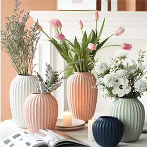 Introducing our Nordic Simple Vertical Striped Ceramic Vase, a perfect addition to your home decor. The clean lines and vertical stripes create a modern and minimalist design. This vase is made of high-quality ceramic material, ensuring its durability. Great for displaying fresh flowers or as a standalone piece. Its simple yet elegant style makes it a versatile decor item that can complement any room in your home.