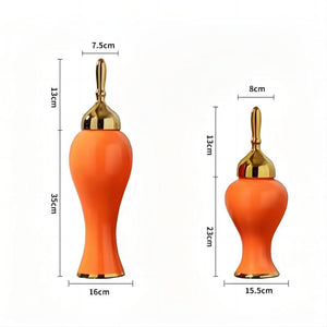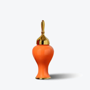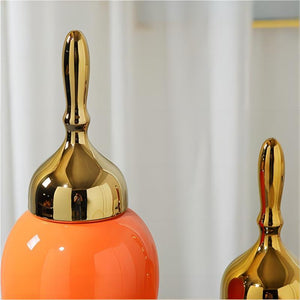 Orange Ginger Jar with Gold Lid