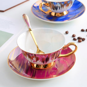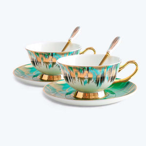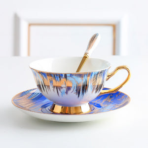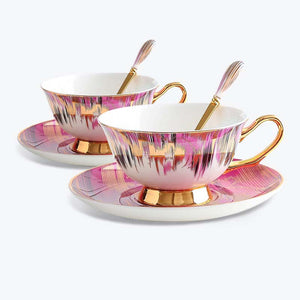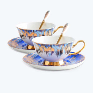 Royal Auroral Design Bone China Coffee Cup and Saucer Set of 2