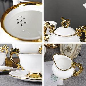 ? Gold Handle and Edge: The handle and edge of the tea set are made of gold, which is elegant and luxurious.