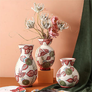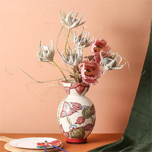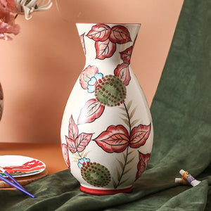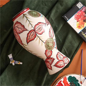 Rural Art Red Leaves Porcelain Vase