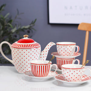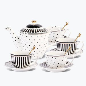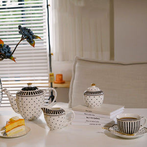 Polka Dot Striped Designed Procelain Modern Tea Set