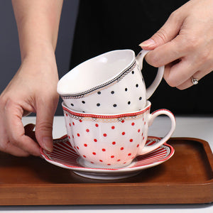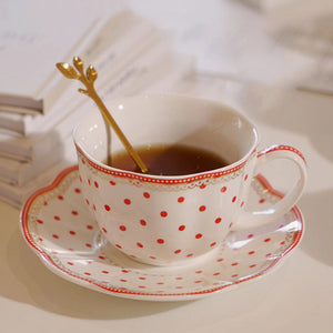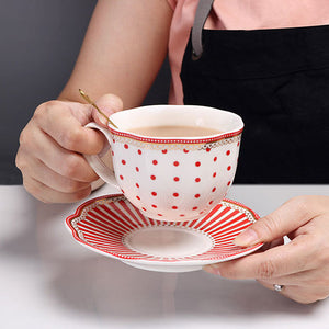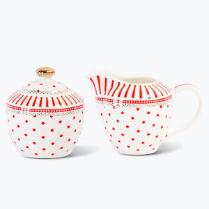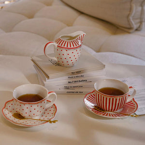 Crafted from dishwasher-safe porcelain (handwash recommended for gold details), this set harmonizes durability with artisanal charm. The high-contrast red-and-white palette and dual-pattern design make it ideal for afternoon tea gatherings, brunch tablescapes, or as stylish kitchen decor.